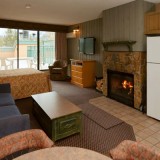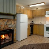 All Studio units have a queen size bed, double size pull out sofa bed or sofa bed, wood burning fireplace and full kitchen. In this room is a 42″ HDTV flat screen.